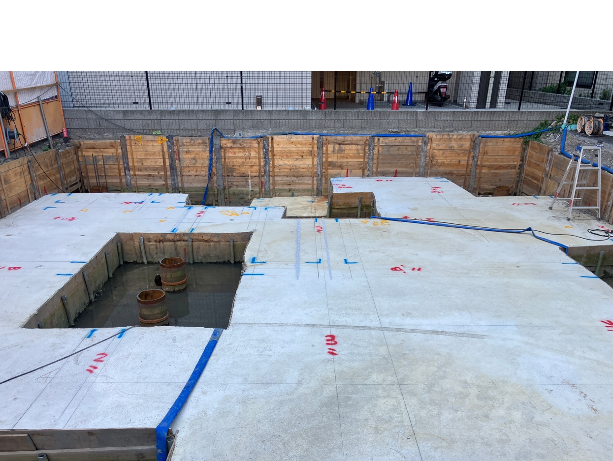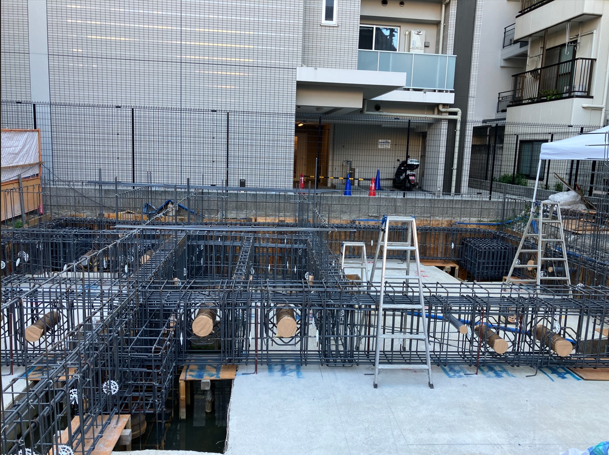 未分類 東京都台東区-A-HOTEL(壁式鉄筋コンクリート住宅5階建て)工事報告2025年9月 2026年3月17日 admin 基礎工事 埋め戻し 転圧 埋め戻し 1階スラブ配筋 1階床コンクリート打設 1階外部型枠建込み 1階壁配筋